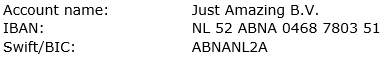 You can also pay by bank transfer. After you place an order, you will receive an e-mail with our banking details:
